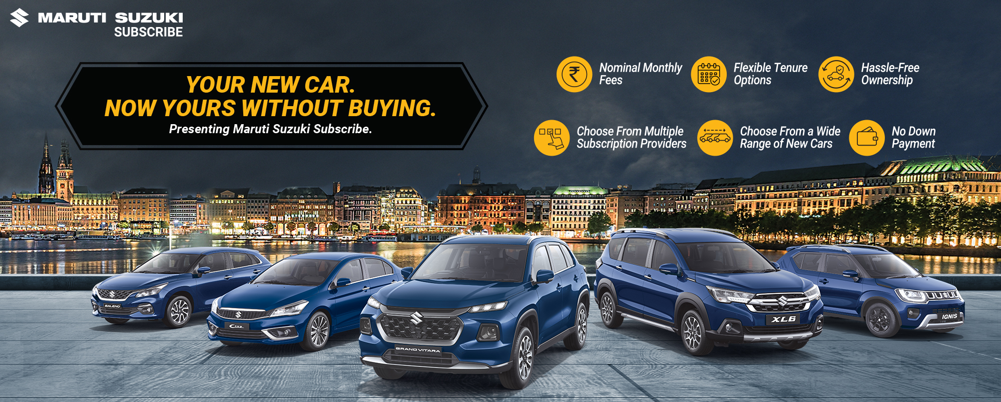 Maruti Suzuki Subscribe enables all customers to enjoy driving their preferred Maruti Suzuki cars without having to deal with all the financial responsibilities that come with owning a car.All you need to do is opt for a monthly subscription plan at a fixed monthly fee, which includes the routine maintenance and insurance costs, and choose a flexible tenure. At Indus Motors in, , Muvattupuzha, all Hatchback, Sedan, SUV, the MUV models line-up includes Baleno, Invicto, EVitara, Jimny, Ciaz, Ignis, Fronx, Grand Vitara, XL6. Here, you will enjoy Maruti Suzuki Subscribe benefits such as: